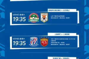 4月11日19:35,河南俱乐部彩陶坊vs山东泰山