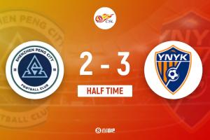 半场战罢,云南玉昆暂3-2深圳新鹏城。