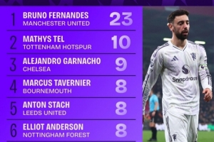 1、B费,曼联,23次